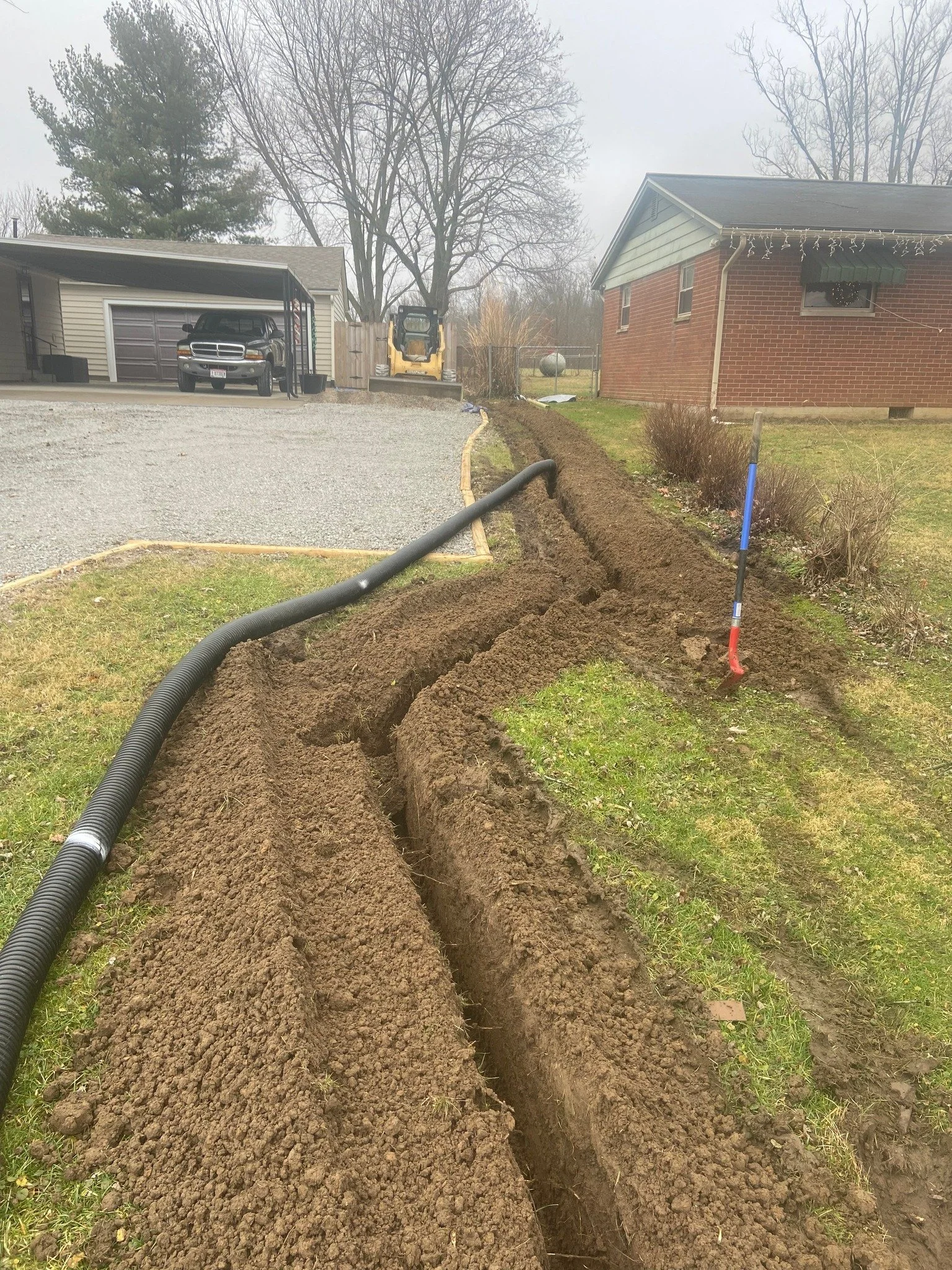 WE offer a variety of drainage solutions. Gutter connections, Tie-ins, catch basins, French or pop-up drains all depend on the amount of water shed you have. Call us to schedule a consultation!